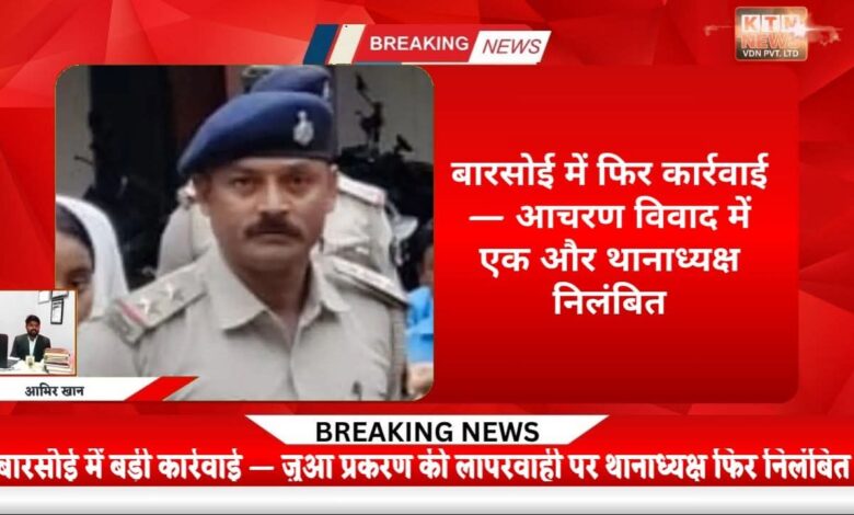बारसोई में बड़ी कार्रवाई — जुआ प्रकरण की लापरवाही पर थानाध्यक्ष फिर निलंबित
