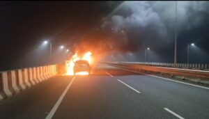 बताया जा रहा है कि गाड़ी के अंदर ड्राइवर साहित अन्य लोग मौजुद थे गाड़ी में आग जैसे लगी कि ड्राइवर गाड़ी एक्साइट में तुरंट रोक कर लोगों की जान बचाने लगे यह गाड़ी दिल्ली की बताई जा रही है Jaanch mein juti Hai poli