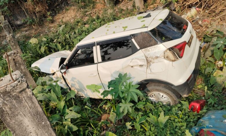जानकारी के अनुसार, वाहन का पीछा किए जाने के दौरान चालक ने भागने की कोशिश में गाड़ी को सड़क के नीचे गड्ढे में उतार दिया, जिससे वाहन दुर्घटनाग्रस्त हो गया। मौके का फायदा उठाकर चालक फरार होने में सफल रहा।